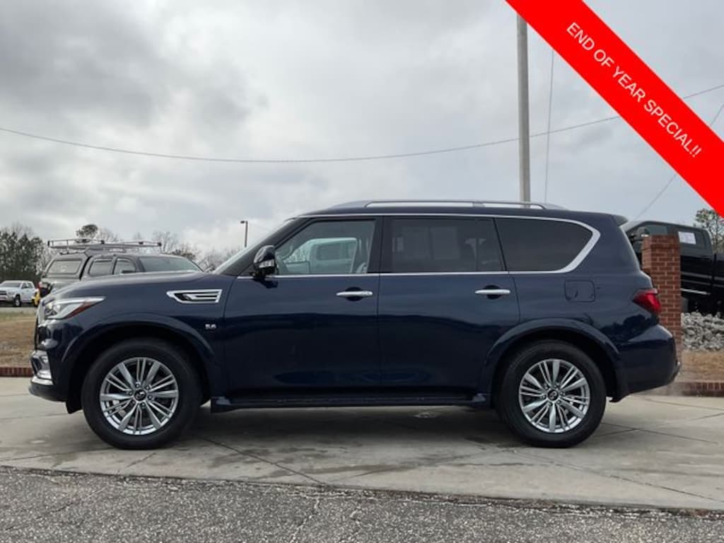 2019 INFINITI QX80 LUXE *3RD SEAT, *4WHEEL DRIVE, *BLUE TOOTH READY, *HEATED SEATS, *KEYLESS ENTRY, *LEATHER SEATS, *MOONROOF, *NAVIGATION, *SATELITE RADIO, *BACKUP CAMERA, *ALL WHEEL DRIVE, QX80 LUXE, 4D Sport Utility, 5.6L V8, 7-Speed Automatic, 4WD, Hermosa Blue, Graphite Leather, 22" Wheel Package, Advanced Climate Control System, Bose Cabin Surround Sound System, Charcoal/Espresso Burl Trim, Chrome Outside Mirror Caps, Climate-Controlled Front Seats, Heated 2nd-Row Seats, Navigation system: INFINITI InTouch Navigation, Semi-Aniline Leather-Appointed Seating w/Quilting, Sensory Package, Wheels: 22" x 8.0" 14-Spoke Forged Aluminum-Alloy. Odometer is 8274 miles below market average! 2019 4D Sport Utility INFINITI LUXE 5.6L V8 QX80 4WD